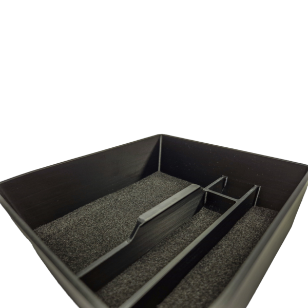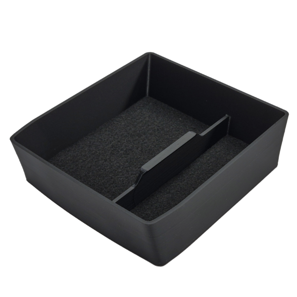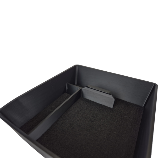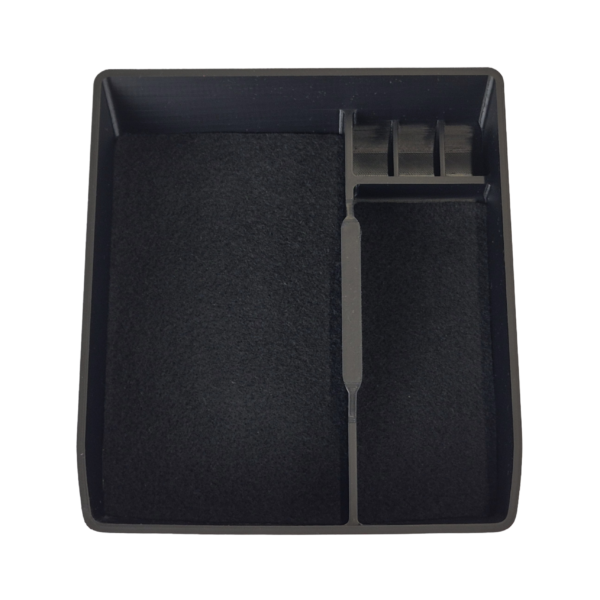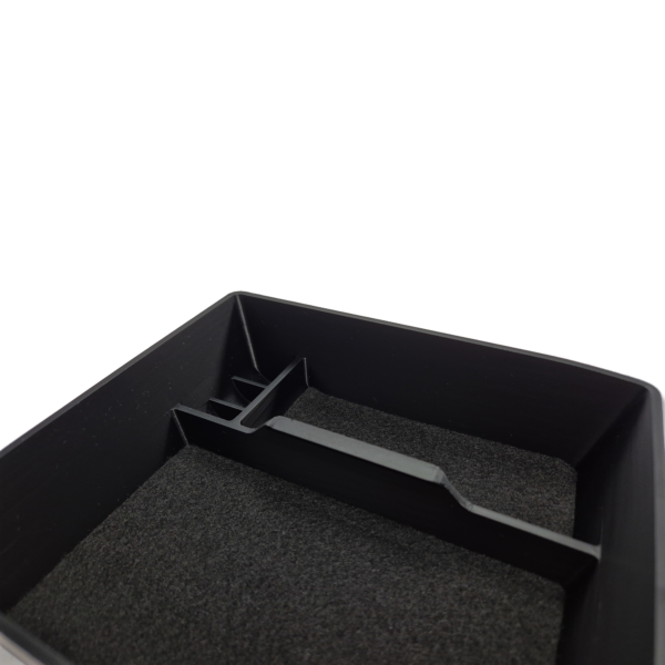 Wykorzystaj całą przestrzeń podłokietnika bez tworzenia bałaganu. Organizer dzieli dostępną przestrzeń na pół- do dolnej części nadal masz dostęp! Wystarczy złapać za rączkę i podnieść wkładkę.